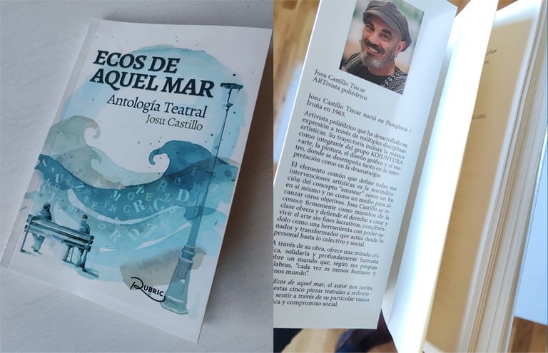 "Ecos de aquel mar" presenta cinco obras teatrales escritas por Josu Castillo que, aunque escritas en diferentes momentos, "dialogan entre sí como los oleajes de una misma marea", reflejando el compromiso social y la defensa de la dignidad humana. Este emotivo recorrido a través del teatro social y solidario ha llevado sus historias a numerosos escenarios de Navarra. Este libro no solo es una recopilación de historias, sino también un valioso recurso para montar obras que exploren la esencia de la dignidad humana.