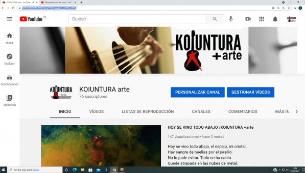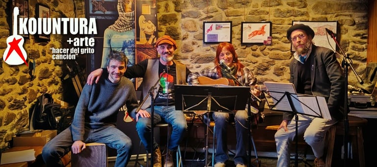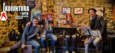 Koiuntura fue un grupo musical navarro que estuvo en escena durante los años 90. Su música “cantautor” y comprometida recorrió multitud de escenarios, grandes y pequeños, por toda la geografía Navarra y comunidades limítrofes. En 1998 el grupo dio su último concierto, pero sus canciones siguieron escuchándose con la irrupción de Internet y las Redes Sociales. Desde los 90 hasta hoy, los fundadores del grupo, Resu Ansorena y Josu Castillo continuaron trabajando en el mundo artístico. Resu siguió componiendo y educando su voz y Josu se adentró en la investigación del mundo teatral en todas sus variantes. En la actualidad est@s dos veteranos artistas han decidido sumar sus aprendizajes y potencialidades, dando a luz este proyecto artístico, grupal y musical : KOIUNTURA+arte. KOIUNTURA+arte se plantea como un grupo artístico donde a través de la música como eje vertebrador, vaya generando una interacción creativa con otras disciplinas artísticas. (Audiovisual, fotografiá, pintura, poesía, teatro...).