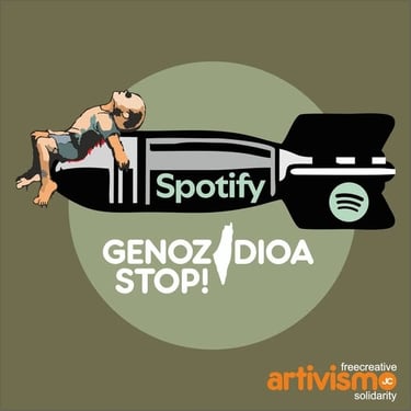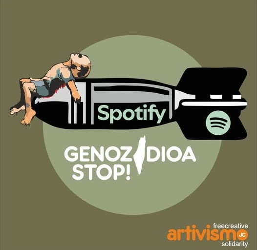 Por todo esto, secundamos y apoyamos el llamamiento de la Plataforma Musikariak Palestinarekin en este boicot directo a Spotify, en solidaridad con Palestina, causa de la Humanidad y cuyo genocidio nos atraviesa como artivistas que somos.