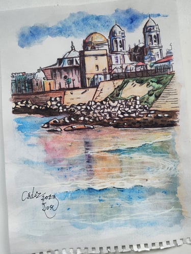 NUESTRA CAI... Conozco la ciudad de Cádiz desde hace mucho, pero descubrirla fue hace bien poco. Tengo la creencia de que si algo ayuda a descubrir cualquier cosa en este mundo, material o inmaterial, es pintarlo, dibujarlo, bocetearlo... Y así surgieron estas acuarelas.