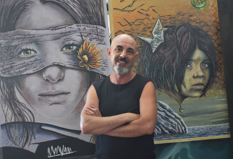 Pinto para plasmar en el lienzo aquellas cuestiones que me inquietan, que me interpelan y despiertan mi necesidad de entender el mundo. La pintura, para mí, es mucho más que expresión: es un acto de pausa, de profunda reflexión sobre lo que estoy creando.